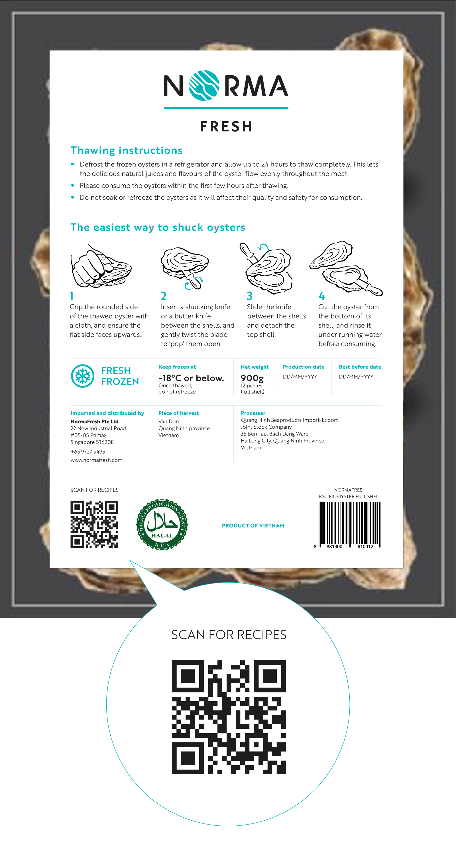 Frozen oysters available in Singaporean supermarkets are primarily sourced from Japan, typically priced above SGD$36, making them rather expensive. Even though NormaFresh offers an alternative, sustainable source from Vietnam at a much more affordable price of SGD$17.50, there is an additional reputation-building aspect for Vietnamese oysters.