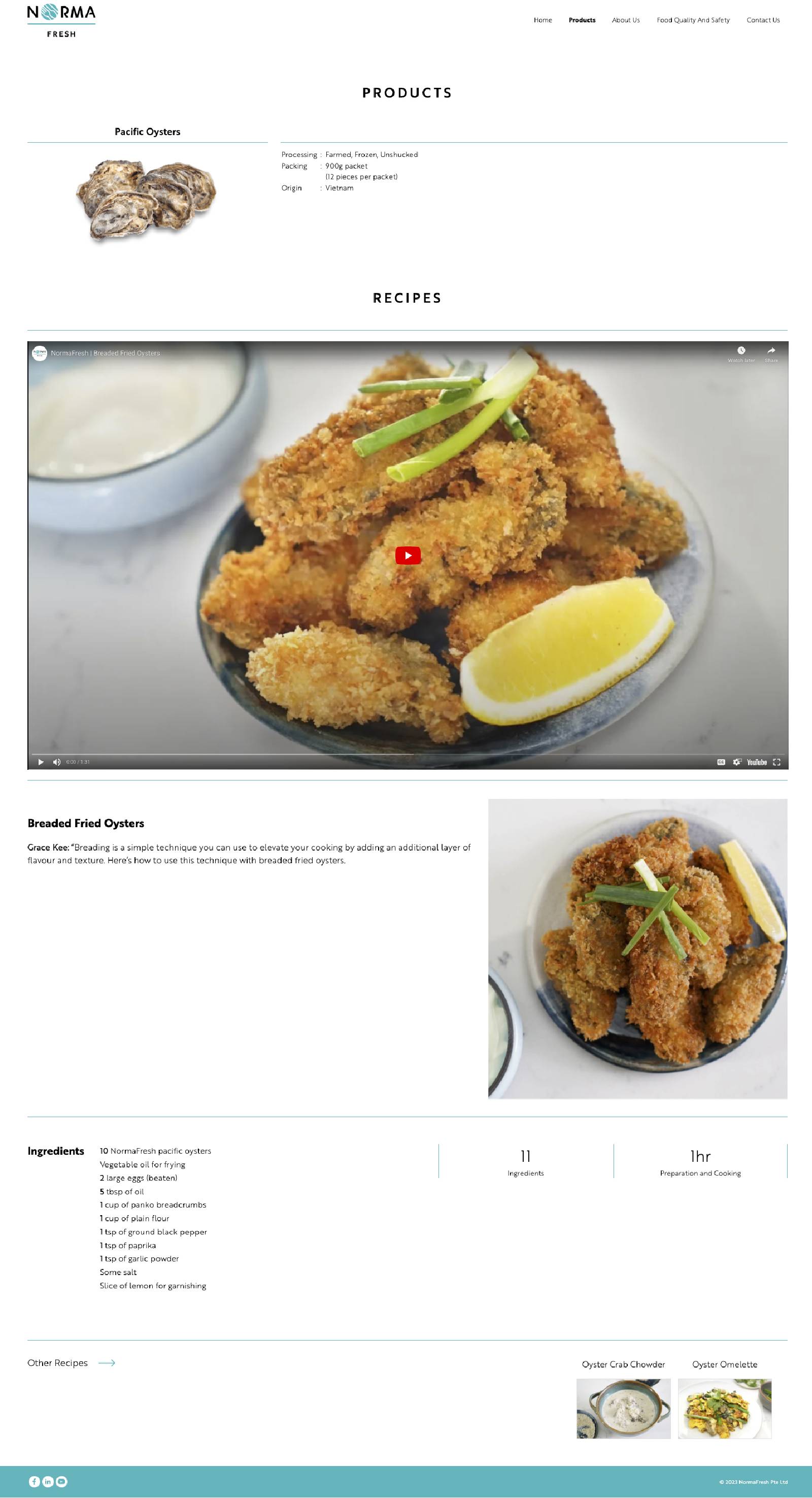We partnered with Grace Kee, locally renowned private dining chef, to create three enticing recipes tailored specifically for Pacific Oysters: Breaded Fried Oysters, Oyster Crab Chowder, and Oyster Omelette.